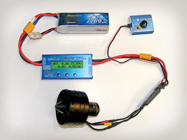Most of the park flyer jet models, such as 50mm and 64mm EDF (electric ducted-fan) jets, typically fly on a 3S or 4S LiPo battery pack. Knowing the cell count is essential, but what about the mAh capacity, such as 1,500, 1,800, or 2,200 mAh? Most models these days come with a factory recommendation for the mAh to give you a starting point, but what if you make an upgrade? What if it is a scratch-built project? I like to take a wattmeter reading then work out a LiPo capacity based on the amp reading and expected flight time.